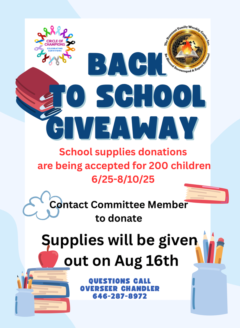 📚✨ Circle of Champions Celebrating Survivors, Inc. and The Remnant Family Worship Center, Inc. are teaming up to support our youth — and we need YOU!